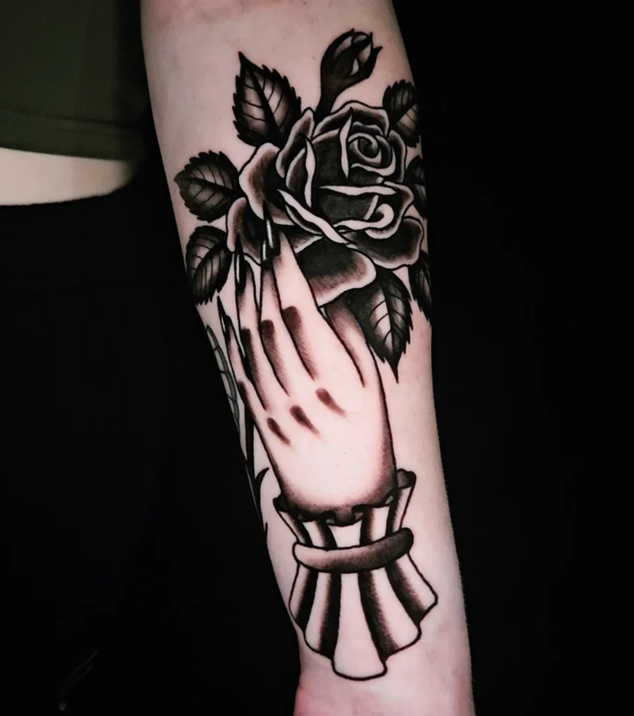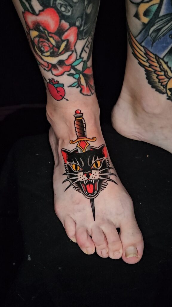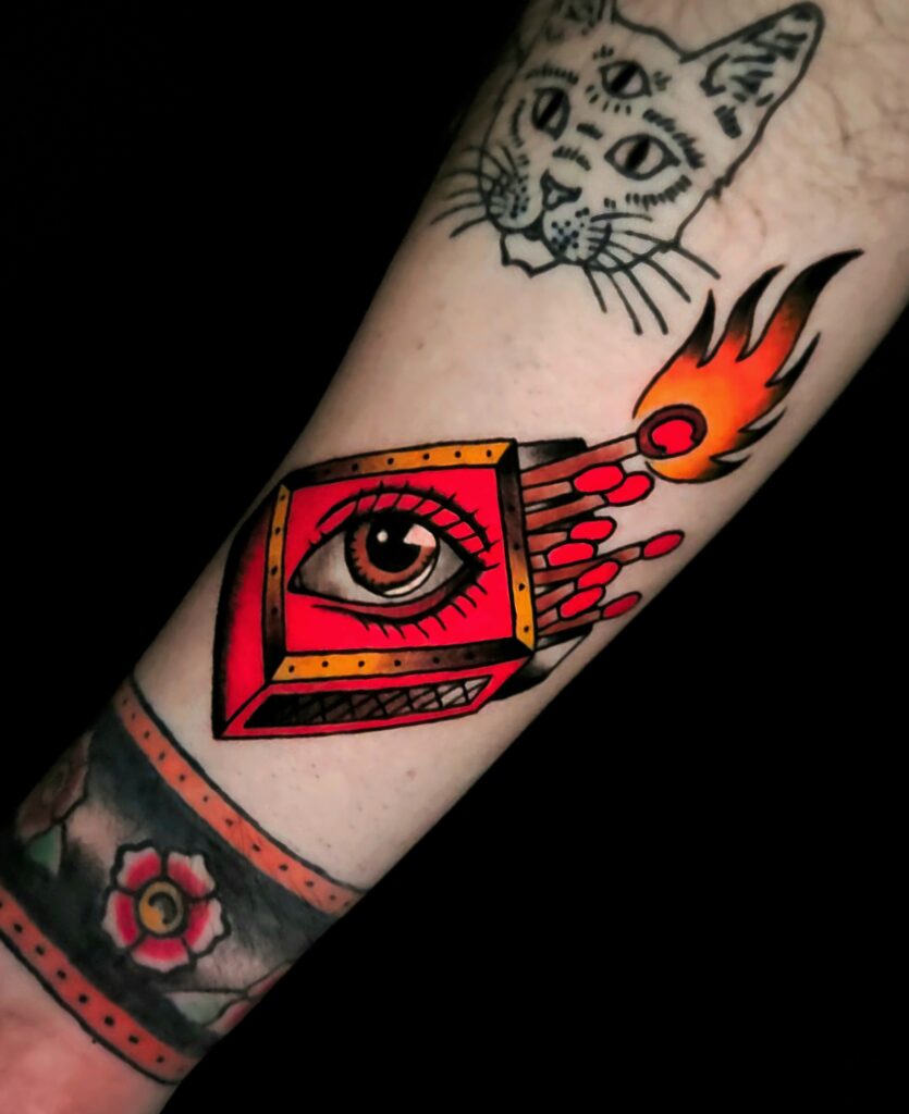 Garrett’s favorite subjects to tattoo include pop culture references, occult fiction, and classic American Traditional imagery in his style.