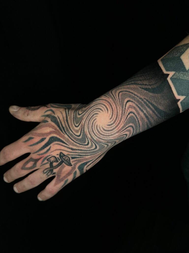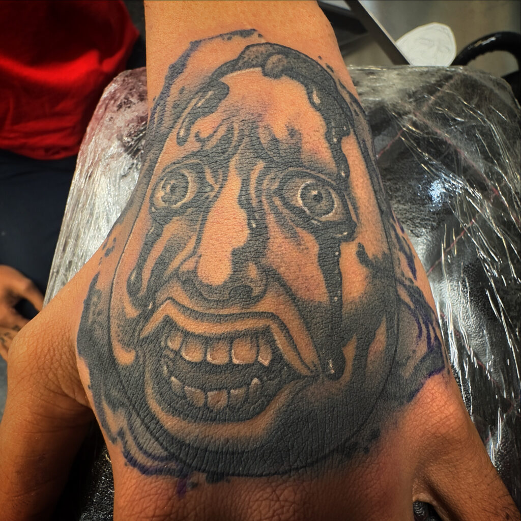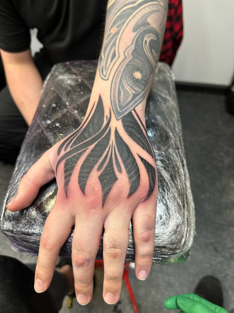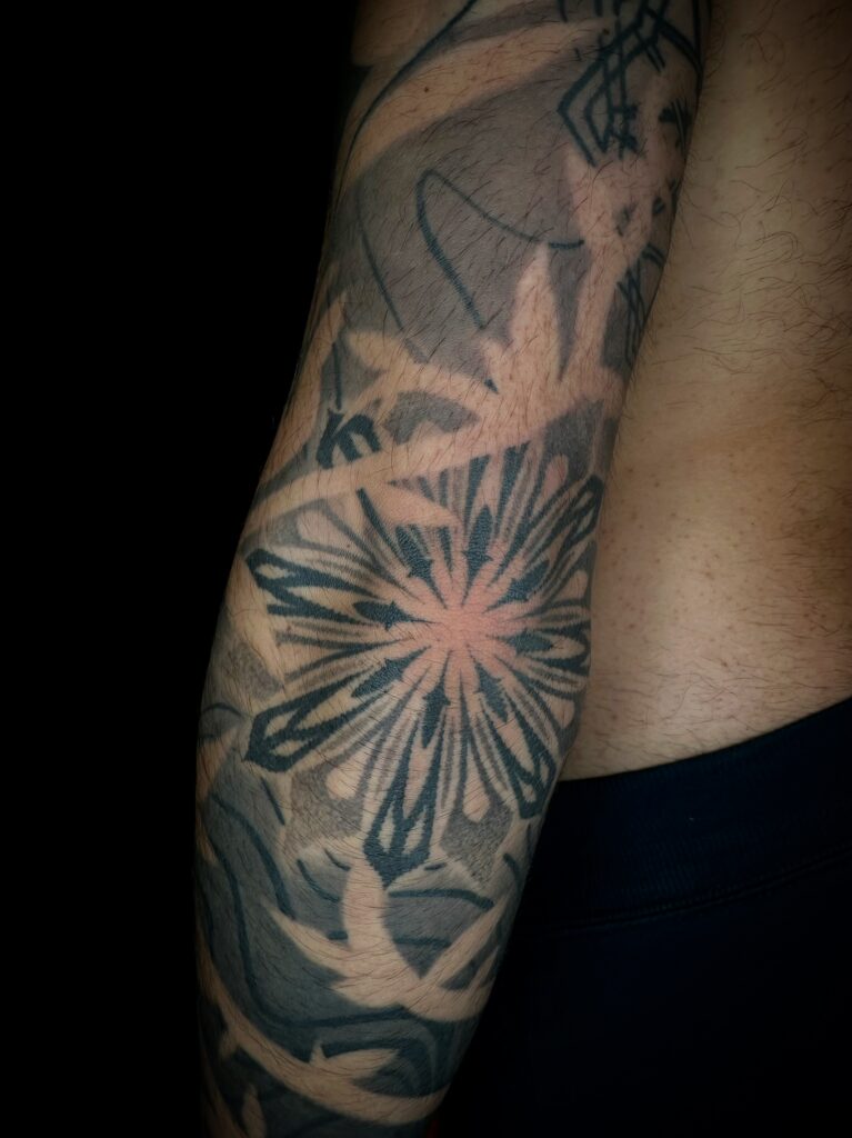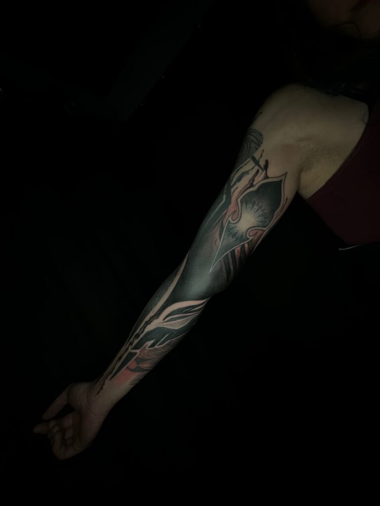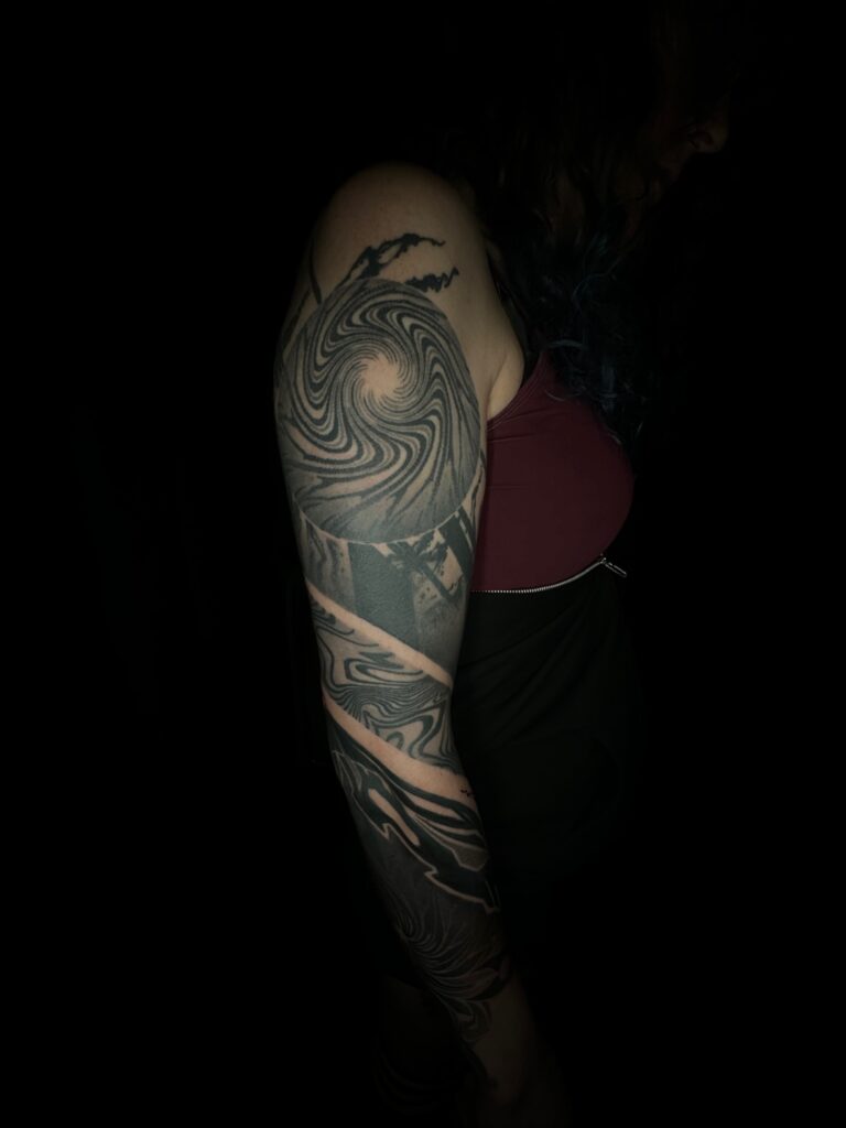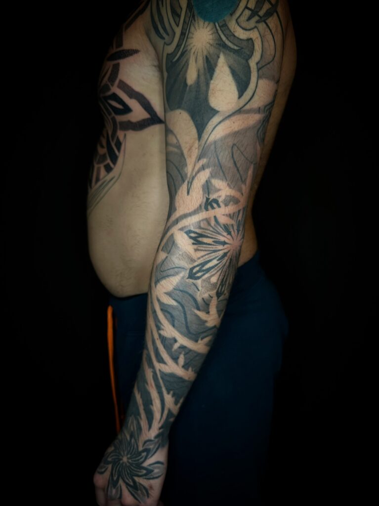 Wes Defiant has been tattooing since 2011, starting in San Diego making neo traditional and walk in tattoos. He’s been in Portland since 2016, primarily working in dark illustrative designs, black work, and geometric styles. Lately, he’s been into making large black and grey geometric one-of-a-kind designs he describes as Alien Tech. Outside of work, Wes loves playing Magic The Gathering with friends as well as building, flying, and organizing community around FPV Drones. If you’re wanting a one-of-a-kind out-of-this-world tattoo that helps you live your best cyber punk reality, Wes is your guy.